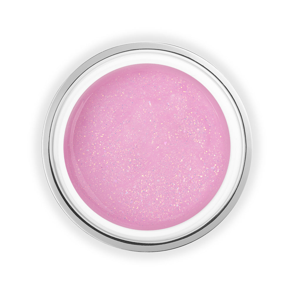 Gel costruttore monofasico ad alta viscosità, dalla colorazione rosa quarzo con microglitter e autolivellante;