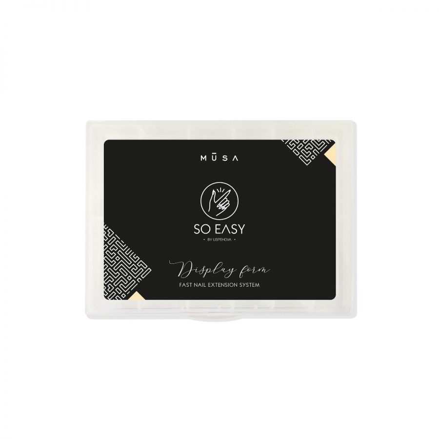 Le DISPLAY FORM sono Dual Form tip indispensabili per eseguire ricostruzioni e refill con gel o acrygel con una struttura perfetta utilizzando l’innovativo metodo SO EASY. Ogni confezione contiene 120 pezzi di tip riutilizzabili suddivise in 12 misure differenti a seconda della dimensione dell’unghia. Sono un’alternativa alle classiche Nail Form in quanto permette di creare da subito l’intera struttura dell’unghia da ricostruire. Grazie alle Display Form puoi creare qualsiasi forma naturale da salone, ma anche forme estreme grazie all’ampia scelta che offre la nostra collezione. Sono trasparenti, con linee guida appositamente studiate per facilitare l’applicazione del prodotto all’interno, raggiungendo da subito la forma desiderata. Sono state progettate per essere molto flessibili ma allo stesso tempo resistenti, caratteristica che permette di risparmiare tempo nella scelta della misura e consente di ridurre al minimo il rischio di creazione di scalini nella zona del giro cuticola.