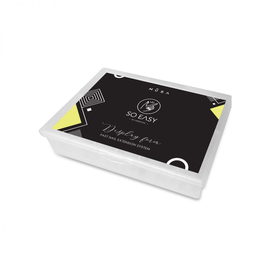 Le DISPLAY FORM sono Dual Form tip indispensabili per eseguire ricostruzioni e refill con gel o acrygel con una struttura perfetta utilizzando l’innovativo metodo SO EASY. Ogni confezione contiene 120 pezzi di tip riutilizzabili suddivise in 12 misure differenti a seconda della dimensione dell’unghia. Sono un’alternativa alle classiche Nail Form in quanto permette di creare da subito l’intera struttura dell’unghia da ricostruire. Grazie alle Display Form puoi creare qualsiasi forma naturale da salone, ma anche forme estreme grazie all’ampia scelta che offre la nostra collezione. Sono trasparenti, con linee guida appositamente studiate per facilitare l’applicazione del prodotto all’interno, raggiungendo da subito la forma desiderata. Sono state progettate per essere molto flessibili ma allo stesso tempo resistenti, caratteristica che permette di risparmiare tempo nella scelta della misura e consente di ridurre al minimo il rischio di creazione di scalini nella zona del giro cuticola.
