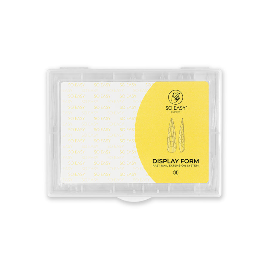 5. Applica uno strato di GEL BUILDER* o ACRYLIC GEL* nella Display Form e posizionala sulla superficie ungueale premendo leggermente, pulisci l'eventuale eccesso di prodotto vicino al giro cuticole e polimerizza in lampada SO EASY QUICK DRY LED UV/LAMP per 30 secondi.